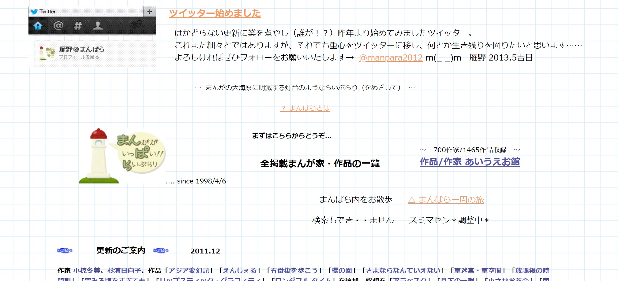 ここではすべての作品・作家をあいうえお順でチェックすることが出来ます。ここがまんぱらのメインコンテンツ、キモの部分です。